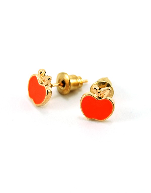 Σκουλαρίκια μεταλλικά μήλα με καρφί σε πορτοκαλί χρώμα.