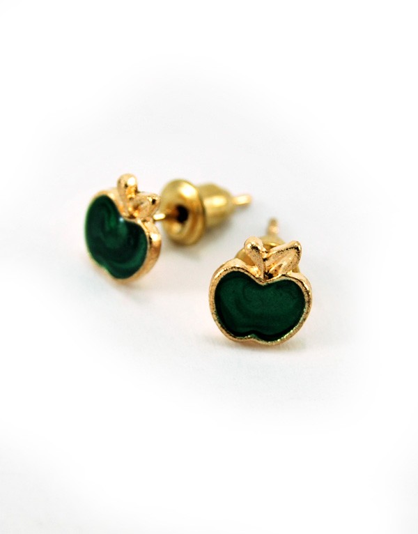 Σκουλαρίκια μεταλλικά μήλα με καρφί σε πράσινο γαλακτώδες χρώμα.